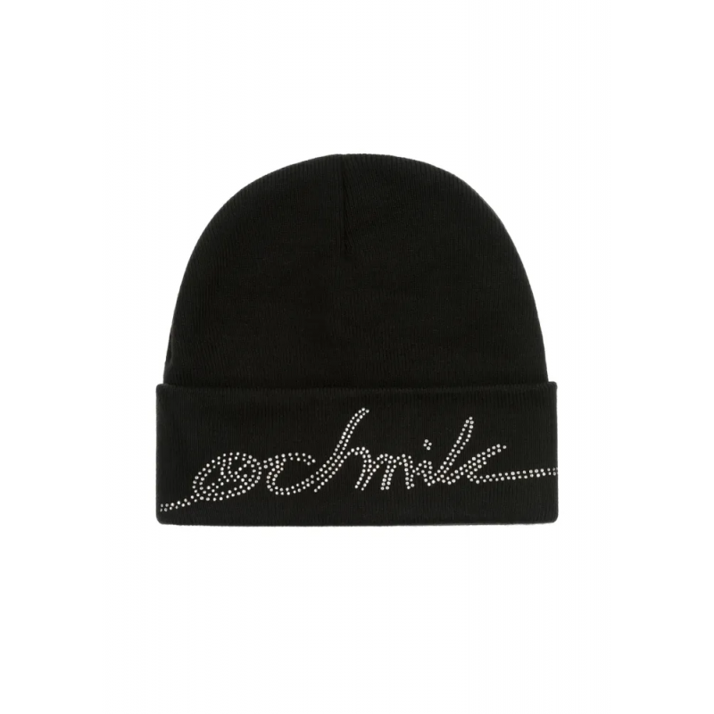 Czapka damska wykonana z akrylu w kolorze czarnym, z ozdobnym napisem Ochnik. Stanowi doskonały dodatek do kurtek w stylu casual.