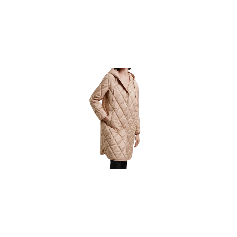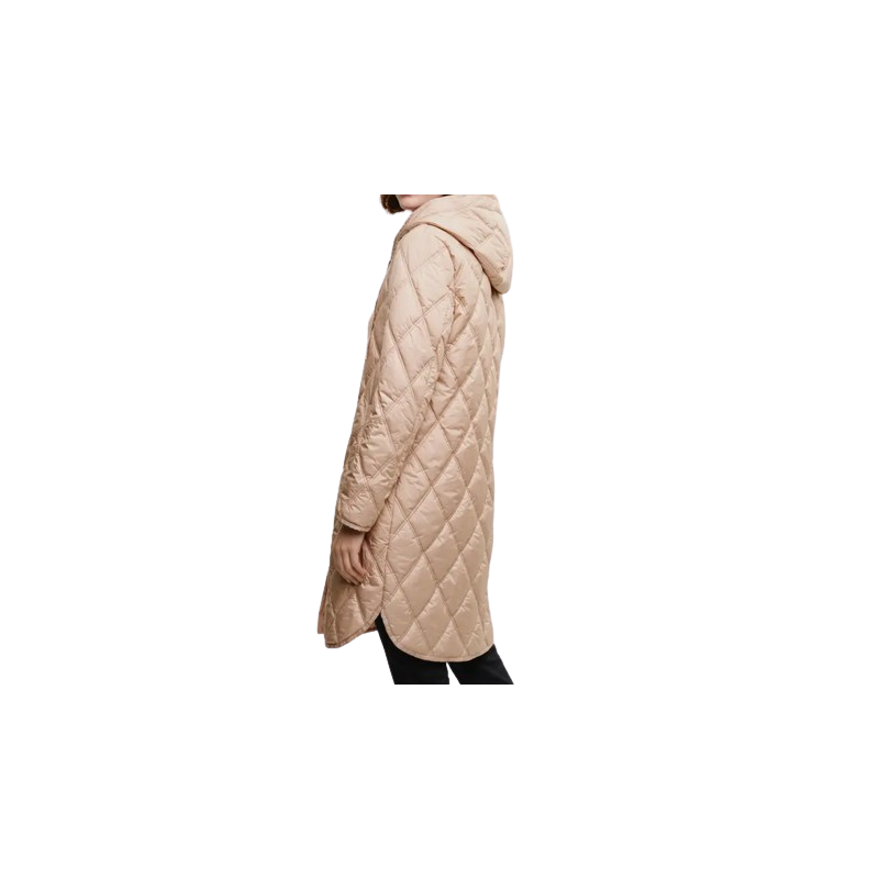 Długa kurtka ocieplana syntetycznym puchem z pikowaniem w romby. Zapinana na napy. Dwie wpuszczane kieszenie. Model z kapturem regulowanym sznureczkami. Na krawędziach kurtki, mankietów oraz kaptura ozdobna lamówka z logo marki OCHNIK.