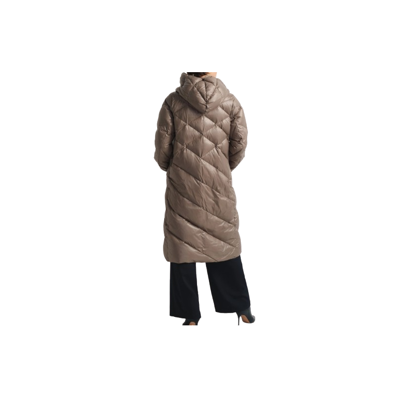 Kurtka wykonana z wytrzymałego nylonu i ocieplona mieszanką puchu i pierza, skutecznie chroni przed zimnem, wiatrem i wilgocią, zapewniając ciepło nawet w mroźne dni. Modnie pikowany fason nadaje kurtce lekkości i nowoczesnego charakteru, a długość za kolano zapewnia dodatkową ochronę przed chłodem. Model zapinany jest na praktyczne napy, co ułatwia szybkie zakładanie i zdejmowanie. Dwie wpuszczane kieszenie na suwak gwarantują bezpieczne przechowywanie drobiazgów i jednocześnie pełnią funkcję ocieplanych schowków na dłonie. Obecność kaptura zwiększa ochronę przed wiatrem i opadami, a gładka, nylonowa podszewka zapewnia komfort oraz wygodne zakładanie nawet na grubsze swetry.