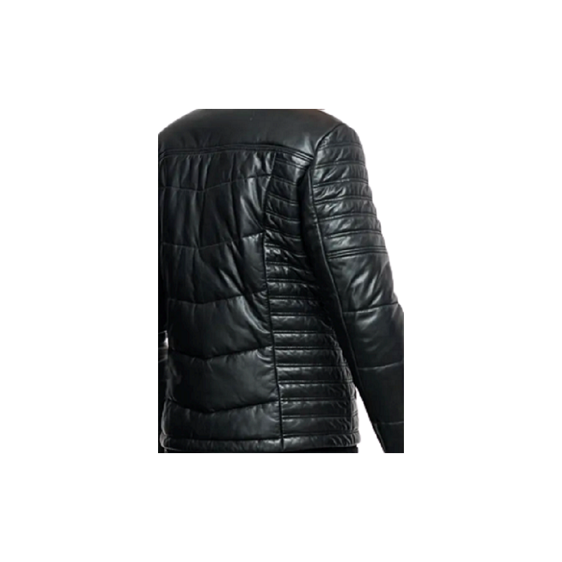 Męska kurtka o formie skórzanej puchówki. Uszyta z bardzo miękkiej naturalnej skóry owczej w czarnym kolorze. Prosta, klasyczna forma z modnym pikowaniem, które dodaje kurtce eleganckiego stylu przy jednoczesnym zachowaniu casuolowego charakteru. Model ten to propozycja dla mężczyzny ceniącego elegancję i ponadczasowe rozwiązania w casualowym wydaniu. Model ocieplany puchem syntetycznym, sylwetka standardowa, zapięcie na suwak, dwie kieszenie zewnętrzne, trzy kieszenie wewnętrzne, suwaki w mankietach, długość okolice bioder, elementy metalowe w kolorze jasnego niklu