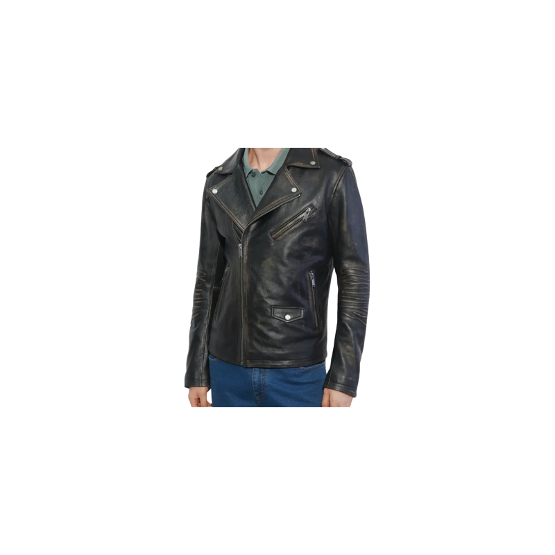 Kurtka męska wykonana z naturalnej skóry bydlęcej w kolorze czarnym. Oryginalny charakter kurki nadaje wykończenie skóry z wyrazistym przetarciem koloru. Model o formie ramoneski z licznymi elementami metalowymi. Męska ramoneska to ponadczasowy dodatek, który każdego dnia dopełni Twoją stylizację. Forma ramoneski, przetarcie koloru, wykładany kołnierz, sylwetka standardowa, zapięcie na suwak, cztery kieszenie zewnętrzne, dwie kieszenie wewnętrzne, suwaki w mankietach dla lepszej swobody, model z podszewką, elementy metalowe w kolorze niklu.