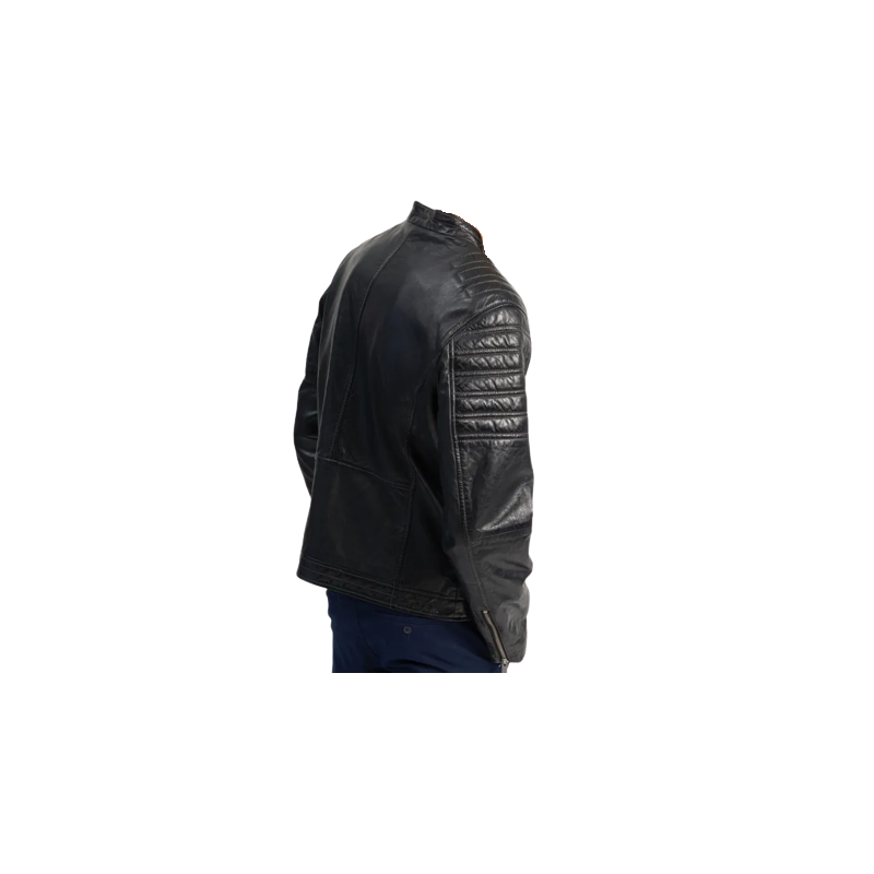 Kurtka męska wykonana z naturalnej skóry w kolorze czarnym. Model posiada wyraziste pikowania na ramionach i rękawach. Zamki nadają modelowi sportowy charakter. Model ten to propozycja dla mężczyzny ceniącego ponadczasowe rozwiązania w casualowym oraz sportowym wydaniu. Sylwetka slim, model ze stójką, pikowania na ramionach i rękawach, zapięcie na suwak, cztery kieszenie zewnętrzne, kieszeń wewnętrzna zamykana na suwak, model z podszewką, model nieocieplany, elementy metalowe w kolorze niklu.