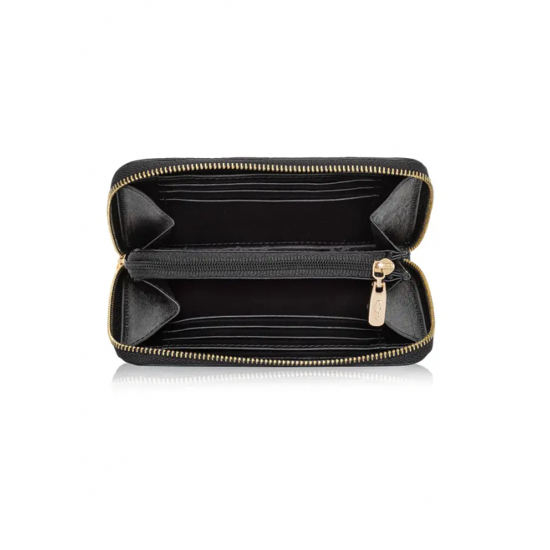 Wnętrze portfela jest wyjątkowo dobrze zorganizowane – znajdziesz tam kieszeń na suwak idealną na bilon, 6 miejsc na karty płatnicze, a także dwie dodatkowe kieszonki, które doskonale sprawdza się do przechowywania banknotów, paragonów czy innych drobnych przedmiotów.