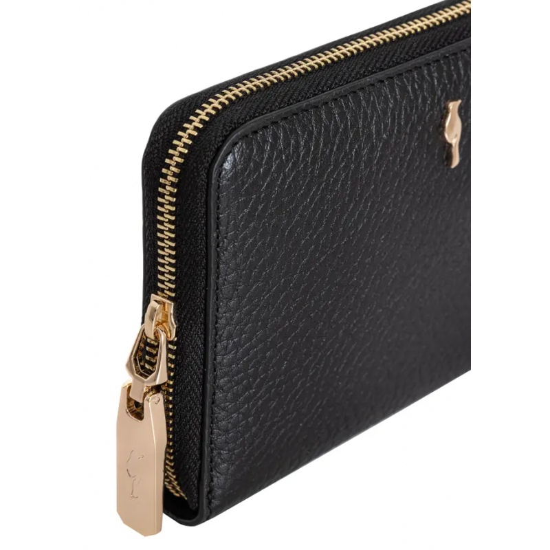 Eleganckie elementy metalowe w kolorze jasnego złota dodają portfelowi luksusowego charakteru, który doskonale współgra z jego nowoczesnym designem.