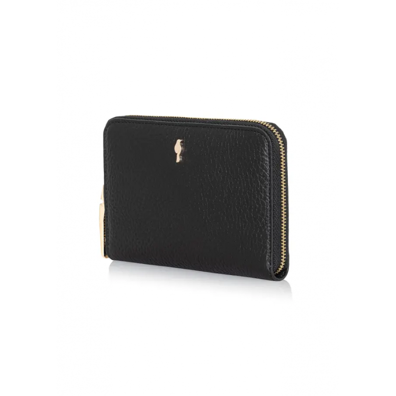 Śedniej wielkości czarny portfel damski to połączenie stylu, jakości i funkcjonalności, które spełni oczekiwania nawet najbardziej wymagających kobiet. Wykonany z naturalnej, groszkowanej skóry, zachwyca eleganckim wyglądem i trwałością.