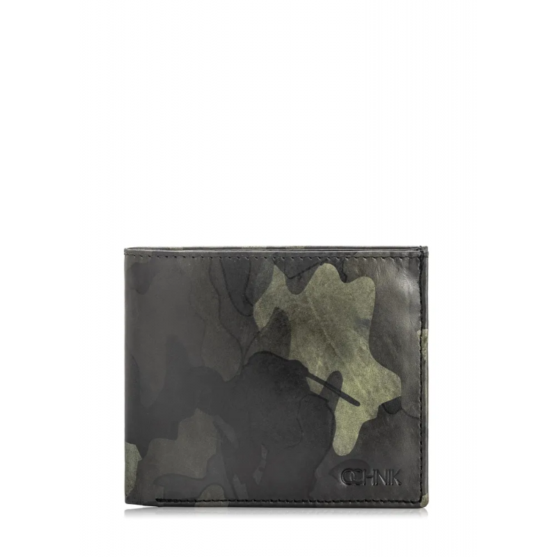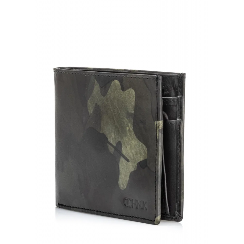Portfel męski wykonany z wysokiej jakości skóry naturalnej w wojskowy wzór.