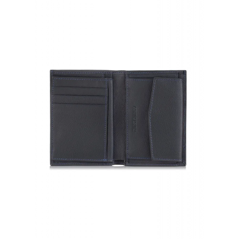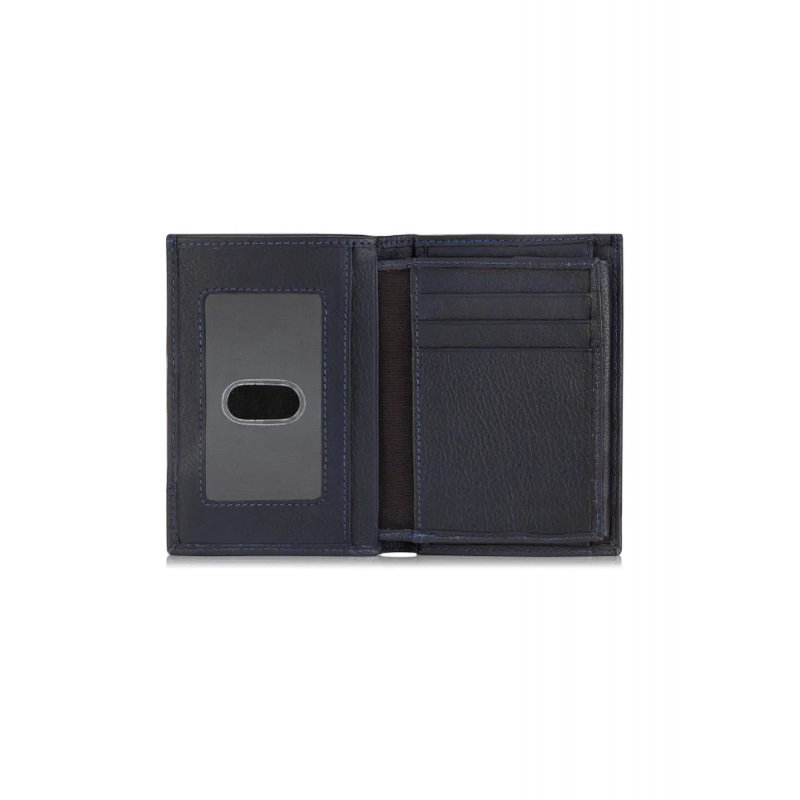 - wewnątrz kieszeń na zatrzask (na bilon), kieszeń na banknoty, 6 miejsc na karty płatnicze, kieszeń przezroczysta oraz 3 kieszenie dodatkowe