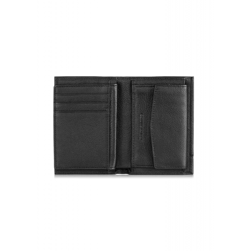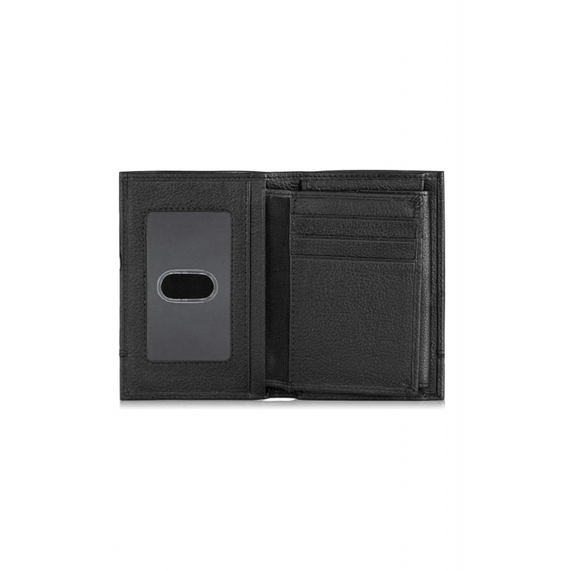 - wewnątrz kieszeń na zatrzask (na bilon), kieszeń na banknoty, 6 miejsc na karty płatnicze, kieszeń przezroczysta oraz 3 kieszenie dodatkowe