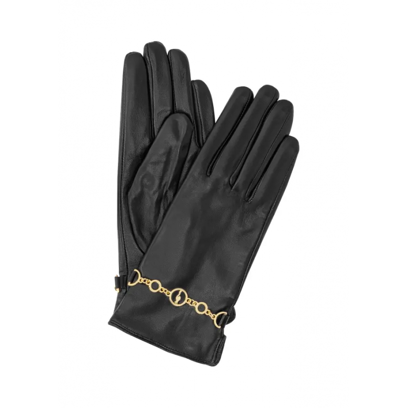 Eleganckie rękawiczki damskie wykonane z wysokogatunkowej skóry naturalnej. Ocieplone wełną. Klasyczny, prosty krój wykończony ozdobnym łańcuszkiem w kolorze złota.