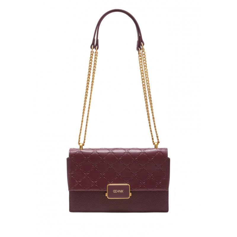 Nieodpinany łańcuszek w połączeniu ze złotymi metalowymi elementami tworzy spójną, nowoczesną całość. Choć model nie mieści formatu A4, jego kompaktowe wymiary czynią go idealnym dodatkiem do kobiecych stylizacji – zarówno tych casualowych, jak i bardziej eleganckich.