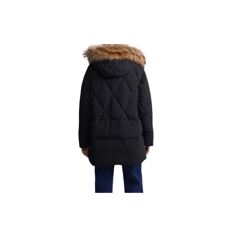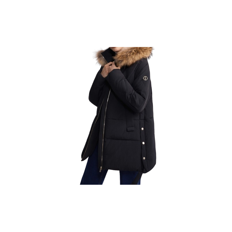 Wypełnienie kurtki naturalnym puchem i pierzem kaczym gwarantuje doskonałą izolację termiczną nawet w najmroźniejsze dni, a uwagę przyciąga kaptur obszyty naturalnym futrem z jenota.