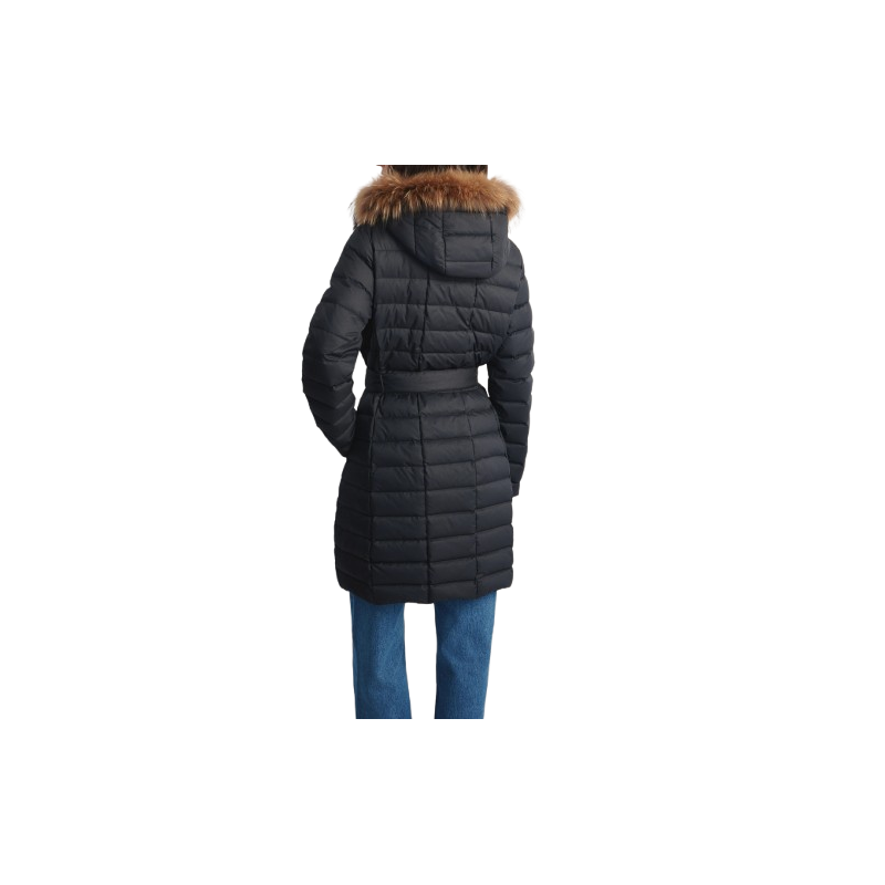 Kurtka wypełniona puchem i pierzem kaczym, zapewnia doskonałą izolację termiczną, jednocześnie pozostając lekka i wygodna. Model wyposażony jest w obszerny kaptur z odpinanym naturalnym futrem z jenota, który dodaje luksusowego charakteru i chroni przed wiatrem.
