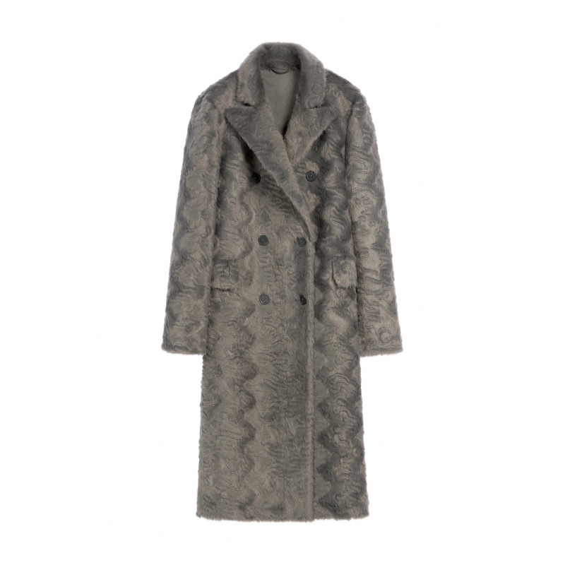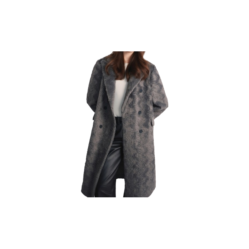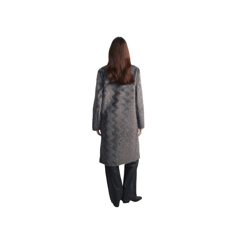 Futro w szarym odcieniu prezentuje się ponadczasowo i będzie pasować zarówno do stylizacji codziennych, jak i wieczorowych. Model o długości za kolano posiada praktyczne zapięcie na guziki.