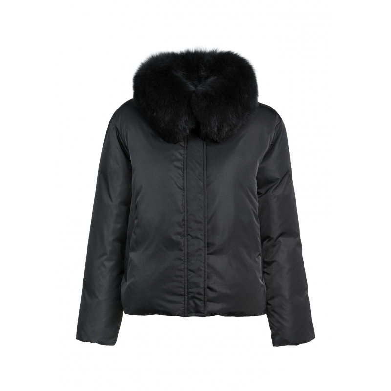 Model wyróżnia się odpinanym kołnierzem obszytym futrem naturalnym z lisa, nadającym całości eleganckiego charakteru.
