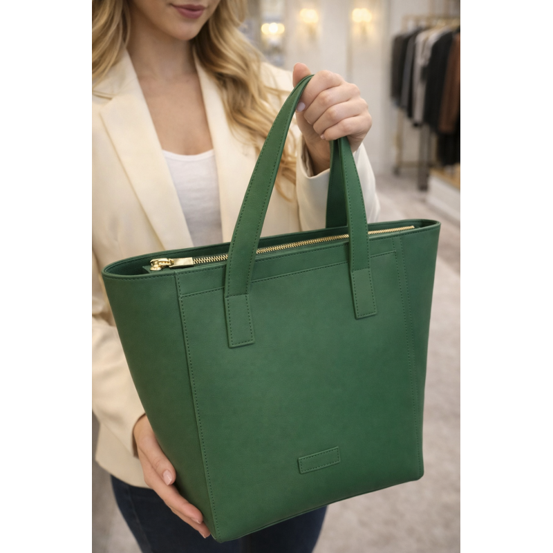Klasyczna, jednokomorowa torebka polskiej marki Verso to połączenie ponadczasowego stylu i najwyższej jakości wykonania. Stworzona z naturalnej skóry, zachwyca subtelną formą i pięknym, głębokim odcieniem zieleni, który dodaje charakteru każdej stylizacji.