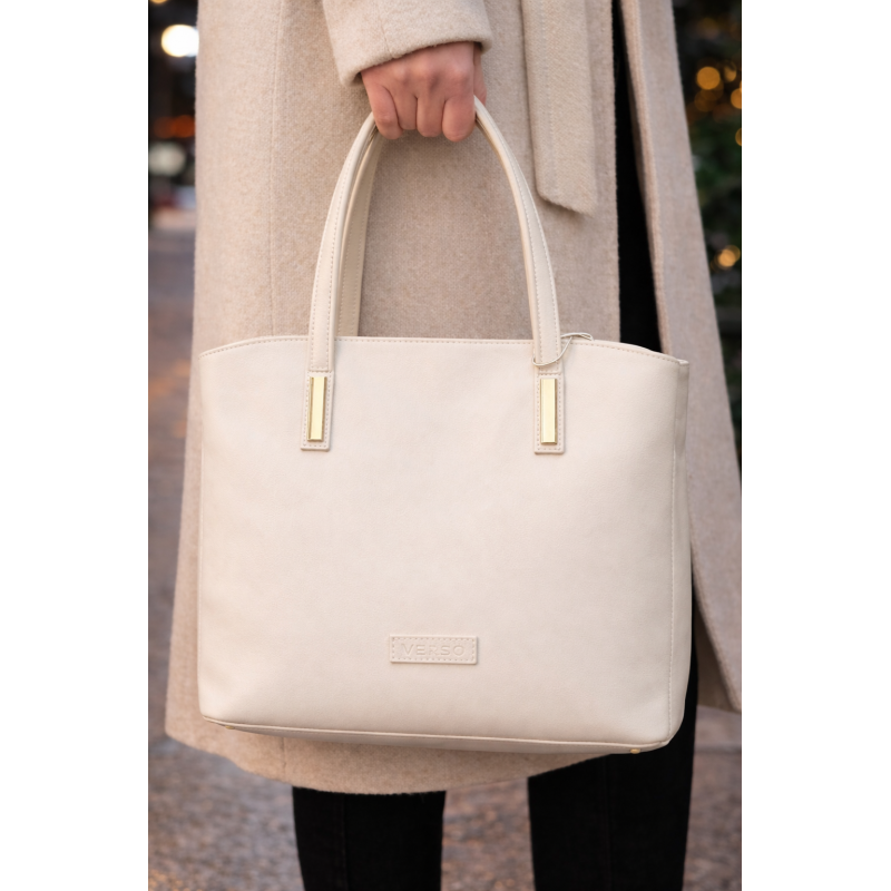Stylowa i ponadczasowa torebka damska marki Verso, wykonana w 100% w Polsce z wysokiej jakości skóry naturalnej. Klasyczny fason oraz subtelny odcień beżu przechodzący w ecru sprawiają, że to idealny wybór zarówno na co dzień, jak i do bardziej eleganckich stylizacji.