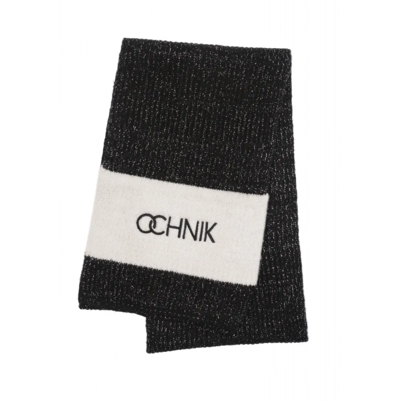 Ciepły szalik damski w kolorze czarnym z białym akcentem. Stanowi doskonały dodatek do kurtek w stylu casual.