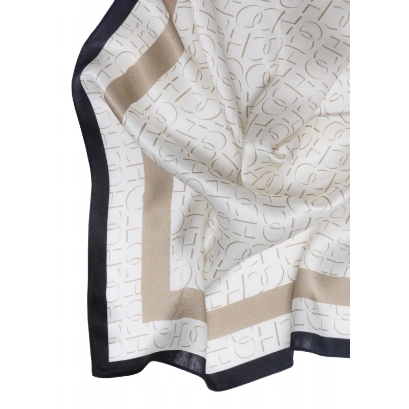 Apaszka damska wykonana z przyjemnego w dotyku jedwabiu. Model z wielokolorowym wzorem.