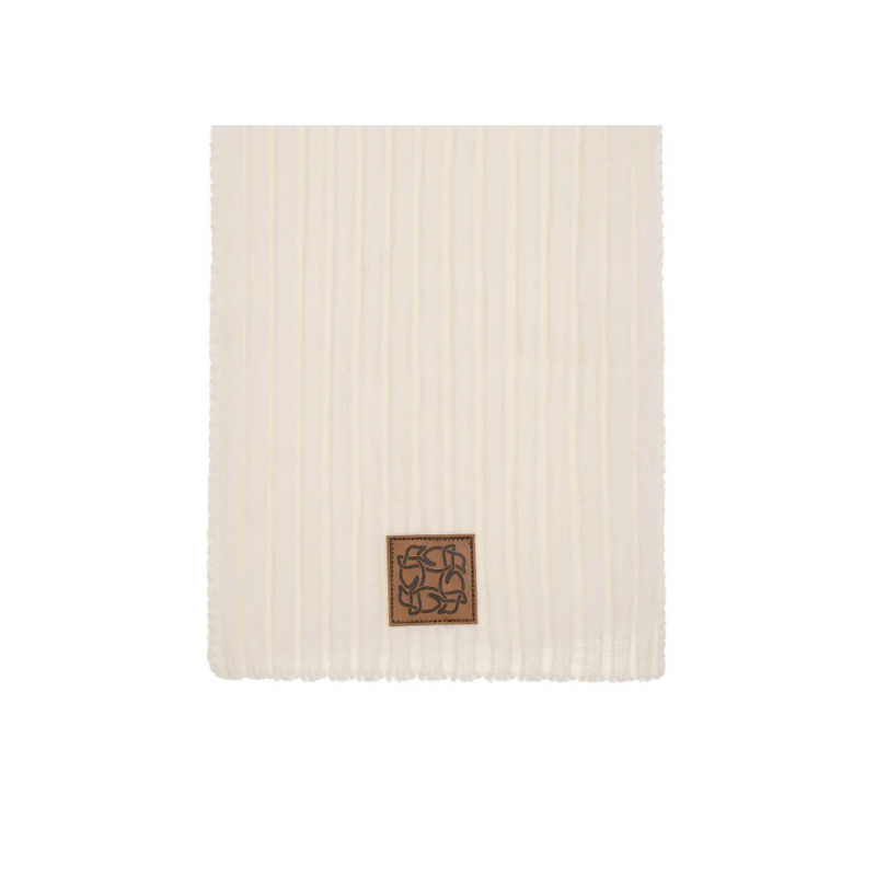 Szalik damski wykonany z miękkiej dzianiny. Model w przyjemnym kremowym kolore będzie doskonałym uzupełnieniem zimowych stylizacji.