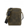 Torba męska o prostej formie w kolorze khaki. Wykonana ze skóry naturalnej. Torba zapinana na suwak oraz klapę. Model posiada wygodny, regulowany pasek pozwalający na noszenie na ramieniu lub cross body. Model jednokomorowy, zapięcie na suwak, wewnątrz kieszeń na suwak oraz kieszeń zabezpieczona paskiem na rzep, z przodu dwie kieszenie na suwak, na tylnej ścianie kieszeń na suwak, regulowany pasek, elementy metalowe w kolorze starego złota, model nie mieści formatu A4